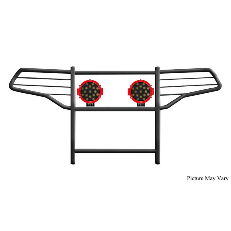 Grille Guard Kit Black Horse Off Road Grille Guard Kit Black Steel Modular Incl. pair of 7.0"Dia. LED Lights w/Red Trim Rings w/ Wiring Harness and Switch Doesn't work with Adaptive Cruise Control Doesn't work with Adaptive Cruise Control It May Interfere with Vehicles equipped with Emergency Braking Systems, Adaptive Cruise Control and Parking Sensors Black Horse Off-Road Modular Design Black Powder Coat Grille Guard Kit 17FJ31MA-PLR Compatible with 2020-2024 Ford Explorer No-Drill/ Vehicle-Specific Application for Custom Fit'solid frame-mounted bolt-on, no drill installation / Welded 3-piece bolt-together construction 1 1/2 ?diameter 16ga. cold-rolled, mandrel-bent mild steel tubing