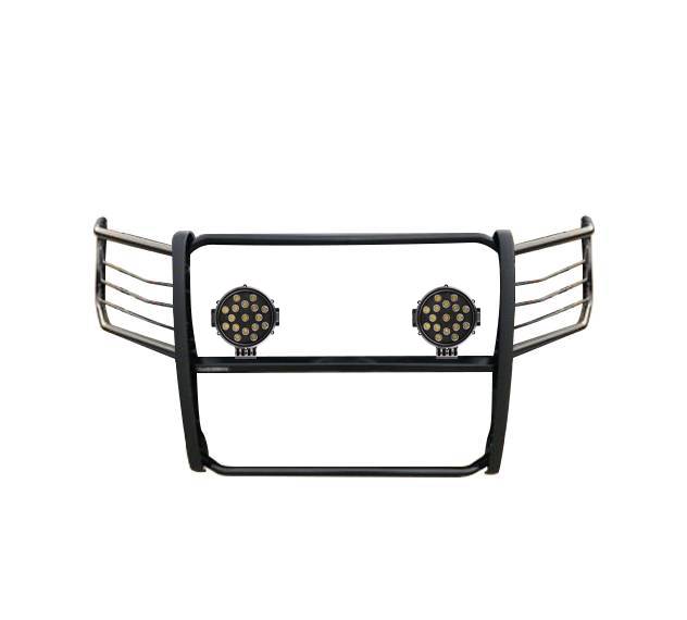 Grille Guard Kit Black Horse Off Road Grille Guard Kit Black Steel Modular Incl. pair of 7.0"Dia. LED Lights w/ Black Trim Rings w/ Wiring Harness and Switch Incl. F150 EcoBoost / Excl. all F150 Raptor models, 20-22 Diesel models and 22-23 F150 Lightning EV It May Interfere with Vehicles equipped with Emergency Braking Systems, Adaptive Cruise Control and Parking Sensors Black Horse Off-Road Modular Design Black Powder Coat Grille Guard Kit 17FP32MA-PLB Compatible with 2015-2024 Ford F-150 No-Drill/ Vehicle-Specific Application for Custom Fit'solid frame-mounted bolt-on, no drill installation / Welded 3-piece bolt-together construction 1 1/2 ?diameter 16ga. cold-rolled, mandrel-bent mild steel tubing