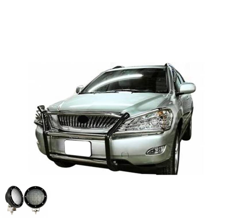 Grille Guard Kit Black Horse Off Road Grille Guard Kit'stainless Steel Stainless Steel Modular Pair of 5.3" Dia. LED Flood Lights w/ Black Trim Rings Wiring Harness and Switch Black Horse Off-Road Modular Design Polished Stainless Steel Grille Guard Kit17G80330MSS-PLFB Compatible with 2004-2006 Lexus RX330 2007-2009 Lexus RX350 No-Drill/ Vehicle-Specific Application for Custom Fit Environmentally friendly option to chrome-plating / Solid frame-mounted bolt-on, no drill installation 1 1/2 ?diameter 16ga. 304 grade rust-resistant Stainless-Steel, mandrel-bent tubing