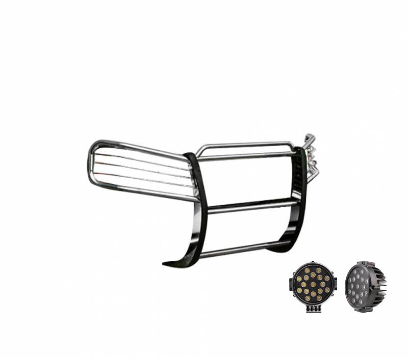 Grille Guard Kit Black Horse Off Road Grille Guard Kit'stainless Steel Stainless Steel Modular Incl. pair of 7.0"Dia. LED Lights w/ Black Trim Rings w/ Wiring Harness and Switch It May Interfere with Vehicles equipped with Emergency Braking Systems, Adaptive Cruise Control and Parking Sensors Black Horse Off-Road Modular Design Polished Stainless Steel Grille Guard Kit17GD26MSS-PLB Compatible with 2002-2009 GMC Envoy No-Drill/ Vehicle-Specific Application for Custom Fit Environmentally friendly option to chrome-plating / Solid frame-mounted bolt-on, no drill installation Welded 3-piece bolt-together construction