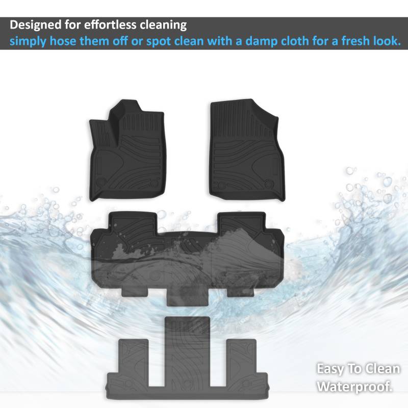 Totaliner Heavy Duty Floor Liner Black Horse Off Road Totaliner Heavy Duty Floor Liner Black TPE Anti-Skid Rug Liner 6-seats / 2nd Row Bucket Seats Material Thicknes: 3.5mm 3 Rows TOTALINER Floor Liners are custom-made, precisely molded to the exact dimensions of your 2018-2023 Chevrolet Traverse 6-seats / 2nd Row Bucket Seats Full set comes in 7 pieces to cover 3 Rows Crafted from 3.5mm thick thermoplastic elastomer (TPE), which shields against spills, dirt, and wear. Designed for effortless cleaning – simply hose them off or spot clean with a damp cloth for a fresh look. Provides all-weather, stain-resistant protection against elements like snow, mud, sand, and rain.