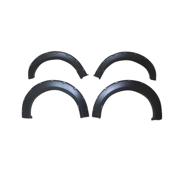 Fender Flares Black Horse Off Road Fender Flares Black TPO Riveted Style Black Horse Off Road Black Bolt-head Style - Smooth Fender Flares (FF-FOF18SM) Compatible with 2018-2021 Ford F-150 Keeps the vehicle street -legal with larger wheels and tires. Adds about 3" to the width of the fender and about 6" in height. Precision vacuum-formed in automotive-grade high impact ABS plastic for a custom-fit.