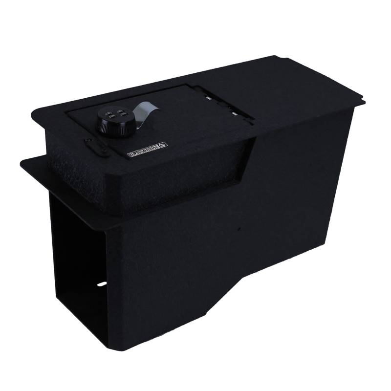 Center Console Safe Black Horse Off Road Center Console Safe Black Steel with 4- Digit Combo Lock Pry - resistant 12- gauge steel Welded tab and notch seams Drill resistant combination locks Bolt on -no drill installation Installs using factory mounting points