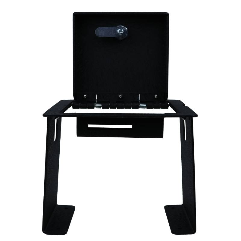 Center Console Safe Black Horse Off Road Center Console Safe Black Steel with 4- Digit Combo Lock Pry - resistant 12- gauge steel Welded tab and notch seams Drill resistant combination locks Bolt on -no drill installation Installs using factory mounting points