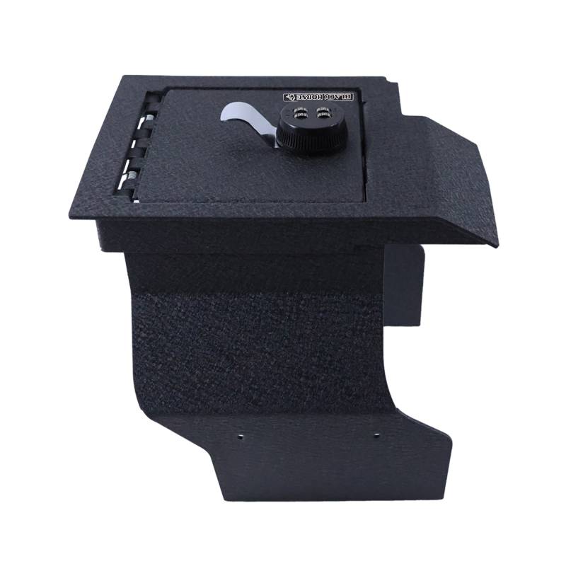 Center Console Safe Black Horse Off Road Center Console Safe Black Steel with 4- Digit Combo Lock Pry - resistant 12- gauge steel Welded tab and notch seams Drill resistant combination locks Bolt on -no drill installation Installs using factory mounting points