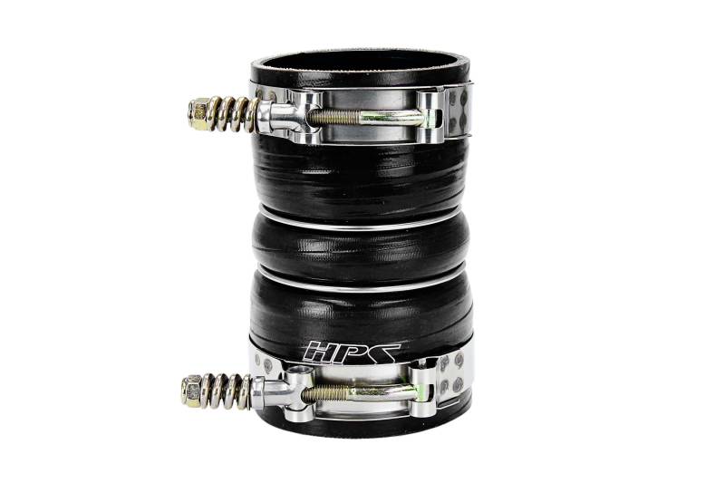 4-ply reinforced high temp fluorolined silicone, replaces OEM intercooler boot This HPS High Temp 4-ply Reinforced Silicone Turbocharger Intercooler Boot is an upgraded replacement for an OEM turbocharger intercooler boot, which is known to weaken and fail over time. Crafted with oil-resistant fluorolined silicone and engineered for superior performance, it is capable of enduring high levels of boost pressure and extremely high temperatures (up to 500F) under the hood, ensuring reliability across various operating conditions. With 4 layers of aramid reinforced silicone and a pressure tolerance of over 100 PSI, boost leaks are a thing of the past. Designed using the OEM component, this HPS product guarantees a seamless fit. Included in this kit are stainless steel spring loaded T-bolt clamps for an easy and leak-free installation. Upgrade your truck or equipment with this boot kit and avoid costly expenses in the long run. Direct replacement upgrade for an old or damaged OEM turbocharger intercooler boot. Wit'stands harsh high temperature and high pressure operating conditions that range from daily driving to heavy towing. Max. temperature rating: 500F (260C) and working pressure rating of over 100 PSI. Intercooler boot is fluorolined for protection from oil blow by. Engineered with 4 layers of aramid reinforced silicone to ensure long lasting quality over the stock boot. Includes stainless steel spring loaded T-bolt clamps.