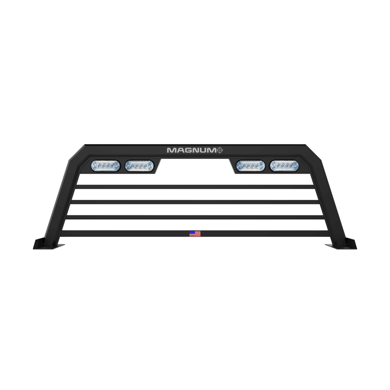 Headache Rack High Pro Regular Bars Matte Black When you need a little more performance from your aluminum headache rack, the High Pro Truck Rack delivers. Taller than our Low Pro Truck Rack, the High Pro provides the highest clearance of our rack selection. When you need to make sure your load clears the cab, the High Pro headache rack models are what you'll need.Built for work and play the High Pro Truck Rack with lights is compatible with our full line of truck accessories. Any job, any cargo, anytime! The High Pro Rack is the lightest, toughest, and best-looking truck rack in its class.All truck racks with lights include complete installation hardware kits (including a set of stake pocket tie-downs where applicable). High Pro model headache racks by Magnum are lighted and are sized to be 3" higher than the roof of your pickup's cab These are available in several back styles and colors.