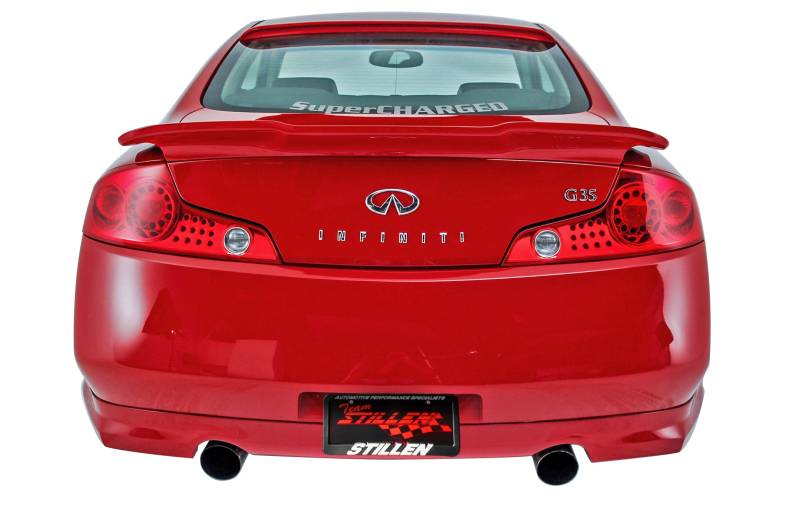 2003-2007 Infiniti G35 Coupe Roof Spoiler - 1036050 Add an aggressive look to your car with the STILLEN polyurethane roof wing. This wing is shipped ready for final prep and painting. Personalize your ride with STILLEN body styling products. Constructed of high quality polyurethane, these parts are flexible and durable, each one offers OEM fit, quality and finish.