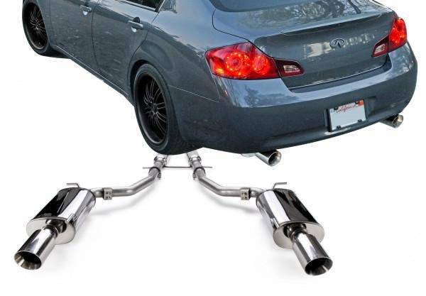 2009-2013 Infiniti G37 Sedan, 2015 Q40 Stainless Steel Cat-Back Exhaust System - 504377 Increase performance with the STILLEN Cat Back Exhaust for Infiniti G35 and Infiniti Q40. This exhaust features a Dual split rear exit. This STILLEN Infiniti G35 Exhaust has dual polished tips. The G35 Exhaust improves the sound and increases the performance of the vehicle.
