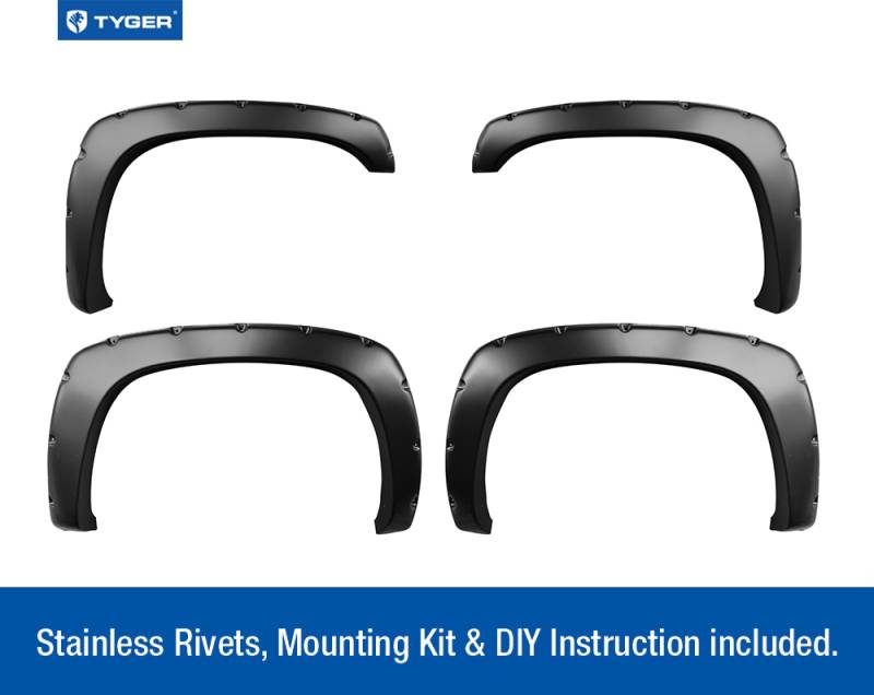 Tyger TG-FF8C4058 4PC Rivet Black Fender Flares for 99-06 Silverado & Sierra