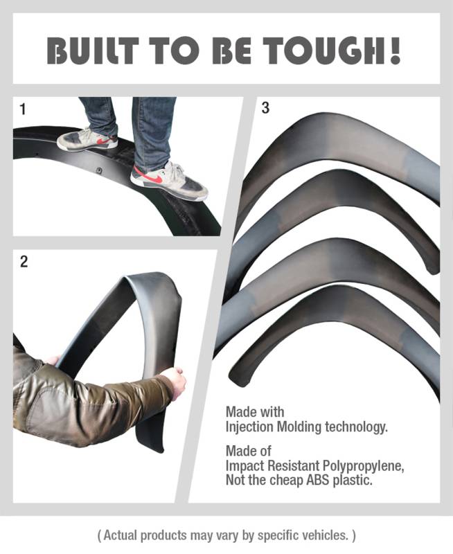- Heavy Duty - Special Injection Molding process ensures enhanced durability, flexibility and strength for these flares to effectively wit'stand against cracking, warping and chalking offering a superior off-road driving experience.