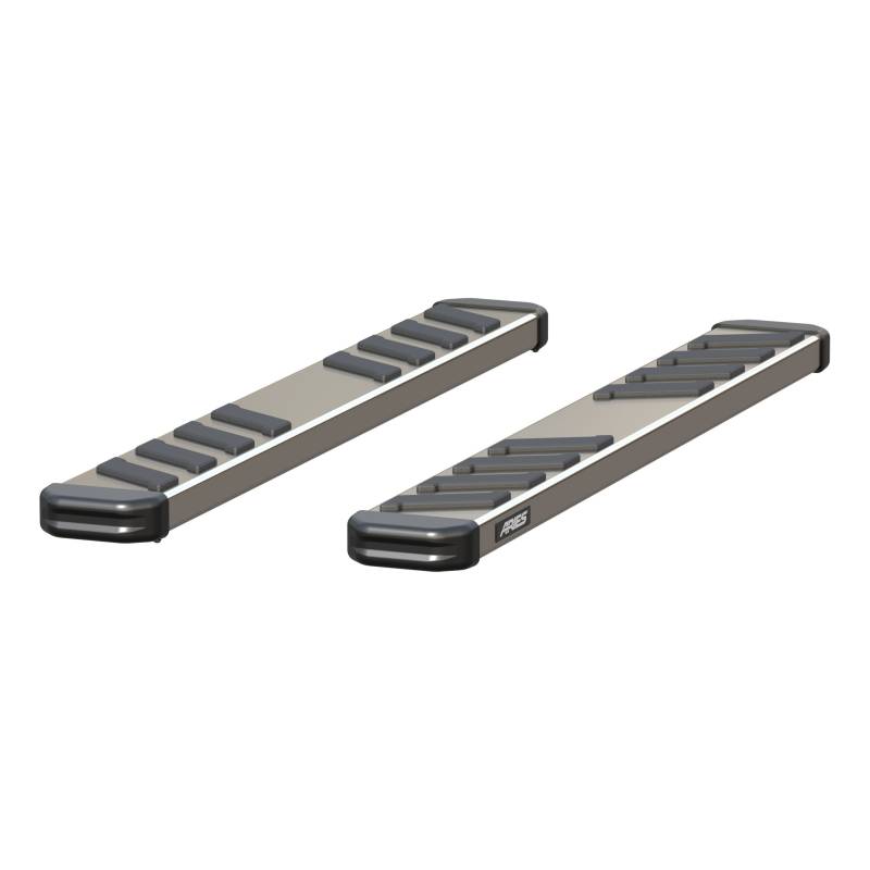 NovaTrac 6" x 53" Polished Stainless Running Boards Upgrade your ride with ARIES NovaTrac Running Boards — engineered for style and practicality. Our 6-inch OE-style running boards complement your vehicle’s look while offering a broad, stable step for daily use. Crafted from polished 304 stainless steel, NovaTrac running boards are designed for the elements and will resist rust and corrosion for years of dependable use. Plus, the extra-wide, non-skid step pads ensure safe footing whether you're entering or exiting your vehicle, making them the perfect companion for any season or terrain. VersaTrac™ mounting brackets sold separately. 6" wide, OE-style running boards offer a sleek, functional design Durable TPO plastic end caps and integrated non-skid step pads for safe entry and exit Polished 304 stainless steel construction is strong and rust resistant Extra-wide, non-skid step pads for safe entry and exit No-drill, vehicle-specific application for a custom fit