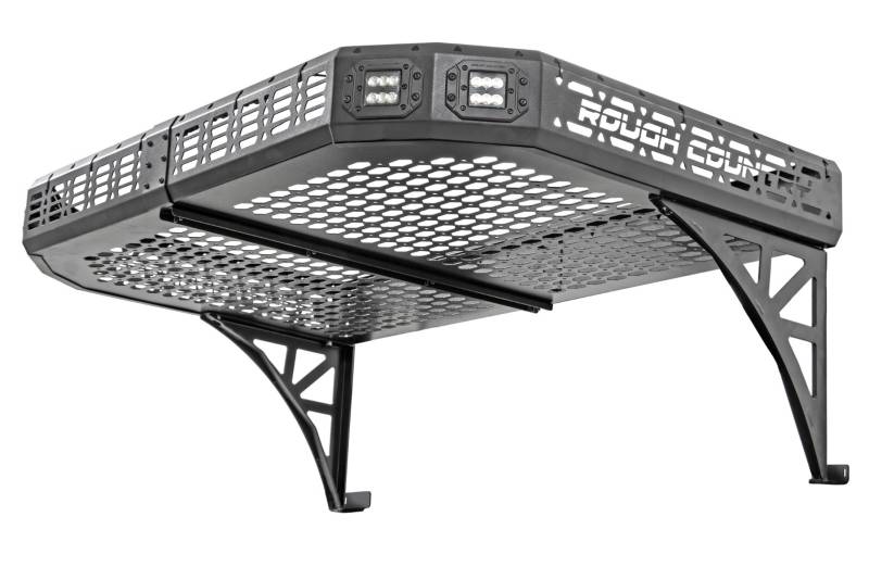 - Heavy-Duty Steel Construction: Built to wit'stand tough trails and heavy payloads for lasting durability.\ Flexible Tie-Down Options: Mesh panel design offers multiple secure mounting points for hauling a variety of cargo.\ Corrosion-Resistant Powder-Coated Finish: Resists rust and wear for long-lasting performance in any weather.\ Quick & Easy Installation: Installs with basic hand tools no cutting or drilling required.\ Full Dump Bed Access: Maintains complete functionality of your dump bed, so you never sacrifice utility.\ Versatile Mesh Panel Design: Provides multiple tie-down points for securing cargo of all shapes and sizes.\ Optional LED Lighting Upgrade: Available with Rough Country's 2-inch flush mount LED lights, delivering a powerful combined 9,600-lumen output for enhanced visibility.\ IP67 Waterproof Rating: Engineered to handle the elements with sealed components for weatherproof reliability..