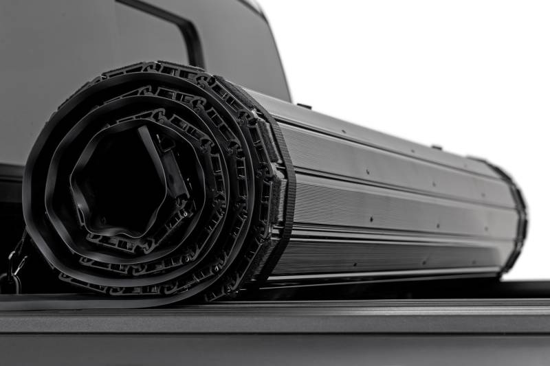 Your truck bed is built for hauling, but without a cover, your cargo is left vulnerable to the elements and unwanted attention. Rough Country's Hard Roll-Up Bed Cover delivers the perfect balance of security, durability, and style, keeping your gear safe, dry, and out of sight while transforming your truck with a sleek, modern look.Sleek Flush, Low-Profile Design: Finished in a stylish matte black with durable aluminum slats, this cover adds a clean, streamlined appearance that complements any truck.Convenient Roll-Up Access: Designed for everyday versatility, the roll-up design allows full bed access in seconds. A single cable pull quickly releases the latch, while the auto-latching closure locks everything back down securely, hassle-free.Built Strong, Built to Last: Supporting up to 600lbs of evenly distributed weight, this heavy-duty cover stands up to tough jobs. Its black powder-coated aluminum frame resists corrosion and harsh weather, ensuring long-lasting durability you can rely on.Smart, Secure Mounting System: A dependable track and rail system with included drain tubes channels water away efficiently, helping keep your cargo dry while ensuring a snug, weather-resistant fit.Safety and Peace of Mind: Nylon safety straps with quick-release clips keep the cover secure when rolled, while a dependable 5-year warranty backs your investment for years of worry-free use.No-Drill, Hassle-Free Install: With all tools included, installation and removal are simple and straightforward, no drilling required.Upgrade your truck with a bed cover that works as hard as you do. Strong, stylish, and built for convenience, the Rough Country Hard Roll-Up Bed Cover is the ultimate way to protect your gear while keeping your truck looking sharp.