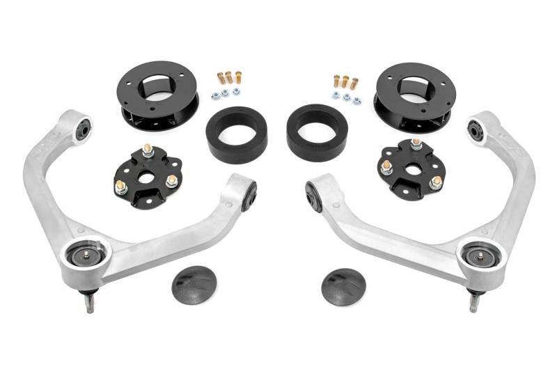 - Hassle-Free Installation: Easy bolt-on design for a quick and seamless setup.\ No Modifications Needed: No cutting or drilling required for a perfect fit.\ Premium Upper Control Arms: Includes new forged aluminum control arms for added strength.\ Enhanced Range of Motion: POM ball joints allow greater articulation and easier installation.\ Pre-Installed Ball Joints: Comes ready to install, saving you time and effort.\ Improved Ground Clearance: Provides extra height for tackling rough terrain.\ Front-to-Rear Leveling: Eliminates the factory rake for a balanced stance.\ Reversible Upgrade: Can be returned to stock if needed..