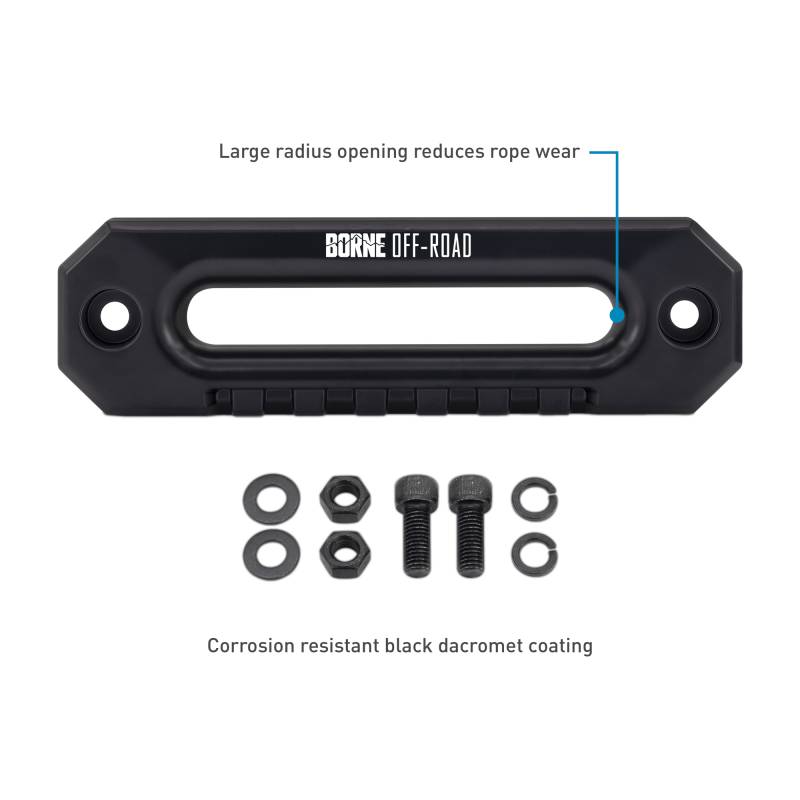 Borne Off-Road 12K Winch, Pink Synthetic Rope Engineered for the most demanding off-road conditions, the Borne Off-Road Winch System offers unparalleled power, reliability, and safety. This comprehensive package includes a high-capacity winch, innovative remote control, robust fairlead, alloy steel hook, and high-performance 85-ft synthetic rope. -- With its powerful, pure copper motor and durable 3-stage planetary gear system, this winch effortlessly conquers obstacles. -- Our advanced wireless remote offers exceptional range and reliability, while the ergonomic design ensures precise operation. Built to last through the harshest conditions, the remote and winch are protected with premium materials and IP-rated components. The system prioritizes safety through features like RFID-linked remote, recessed buttons, and automatic shut-off. -- The included tether strap and durable fairlead further enhance security and rope protection. -- Experience the ultimate off-road recovery with this complete package, backed by a lifetime limited warranty that ensures your peace of mind. Dominate the trail with power, precision, and durability. High-performance winch with a powerful motor, smooth and durable gear system, and high-quality synthetic rope delivers exceptional pulling power and efficiency 3/8” synthetic 85’ rope has a high-capacity strength to be used with the Borne Off-Road winch and comes with an anti-abrasive sheath to prevent damage for longer life expectancy IP68-rated winch for ultimate wet weather protection