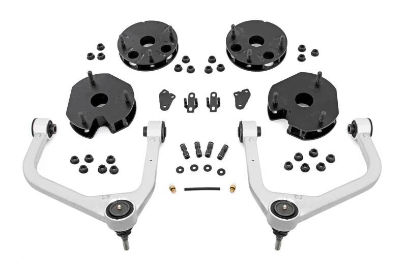 Engineered Exclusively for Air Ride Models: Rough Country's 3.5" Bolt-On Lift Kit is precision-built exclusively for Chevy Tahoe models equipped with Adaptive Air Ride Suspension. This premium lift solution delivers aggressive styling, trail-ready performance, and factory-ride compatibility, all in one easy-to-install package.Forged Strength Where It Matters: Built tough with Forged Aluminum Upper Control Arms, this kit offers superior strength, impact resistance, and long-lasting durability. Designed with OE-style rubber bushings and pre-installed high-articulation POM ball joints, the control arms maintain optimal geometry while allowing smoother suspension travel and greater range of motion, on and off the pavement.Lifted Clearance, Level Stance: Gain the confidence to tackle rugged terrain with increased ground clearance and rear lift strut spacers that allow clearance for up to 305/55R20 tires. The result is a bold, level stance that improves both form and function while eliminating factory rake.Perfect Fit, Full Compatibility: This kit is purpose-built to maintain full functionality of your factory Adaptive Air Ride system, ensuring seamless integration with all ride height modes. Each component is laser-cut with CAD precision for a professional fit and clean finish that aligns with OE quality standards.Straightforward, Bolt-On Install: Installation is 100% bolt-on and requires only basic tools and minimal trimming. With pre-installed components and no need for complex modifications, you can install with confidence, right from your own garage.Peace of Mind Included: Rough Country backs this kit with a Limited Lifetime Replacement Guarantee, ensuring your suspension is ready for whatever comes next.