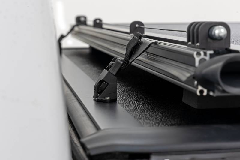 - Ultra Low Profile Design: Flush-mounted tri-fold cover sits level with the bed rails for a sleek, modern look with a matte black aluminum finish.\ Heavy-Duty Aluminum Panels: Rigid aluminum construction delivers excellent strength, durability, and resistance to warping or flexing under load.\ Tri-Fold Quick Access: Fold the cover back in seconds to access cargo without fully removing the cover.\ Corrosion-Resistant Frame: Black powder coated aluminum frame resists rust and corrosion for long-lasting performance in all weather conditions.\ Secure Track and Rail System: Integrated mounting rails provide a stable, low-profile fit with drain tubes included for effective water management.\ Drive Open or Closed: Designed to safely operate fully closed or in the 2/3 open position for hauling larger items.\ Auto-Latching Security: Automatic latching system engages when closed to keep your cargo secure without extra steps.\ Single Cable Release: Interior cable pull allows fast, one-handed latch release and easy bed access.\ No-Drill Installation: Simple bolt-on design installs and removes easily using basic tools, all included.\ Integrated Safety Straps: Durable nylon safety straps secure the cover when folded open during transport.\ 5-Year Warranty Coverage: Backed by a 5-year warranty for added confidence and long-term peace of mind..