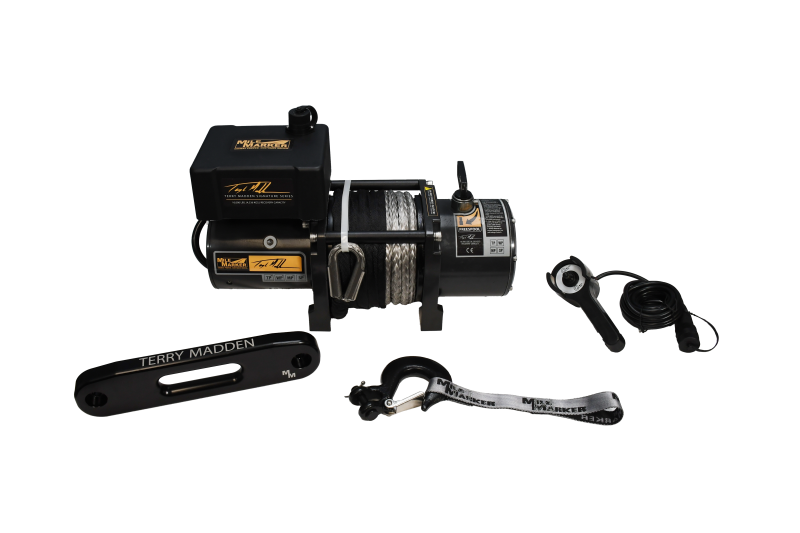 TERRY MADDEN 10K SINATURE SERIES COMPETITION WINCH The Mile Marker Terry Madden Signature Series winches are designed for the rigorous demands of rock crawling competitions and provide exceptional features for competitors by offering the flexibility to pull from the 1st or 4th layer. These lightweight winches operate efficiently with minimal power consumption, ensuring reliable performance. Engineered with meticulous attention to detail, the Terry Madden Signature Series includes soldered wire connections within the control box and a separate plug for dash mount controls, catering to the specific needs of racing enthusiasts. Weighing just 53 lbs and rated for 10,000 lbs of pulling power, these compact winches deliver a combination of maximum power, efficiency, and reliability making them the preferred choice for rock crawlers seeking top-notch equipment.