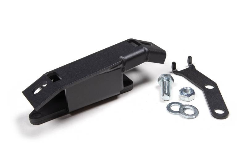 When installing taller lift kits on the later model RAM HDs it is necessary to index the transfer case to improve the front output operating angle for reinstallation of the factory front driveshaft. While rare, gas trucks equipped with the manual lever-operated transfer case require an additional bracket to retain shifter functionality. BDS offers this shifter extension along with the necessary hardware for an easy install. All parts are backed built of high strength steel and finished in a durable textured black powdercoat. For use on 6-bolt transmission-to-transfer case mounts with manual shifter.
