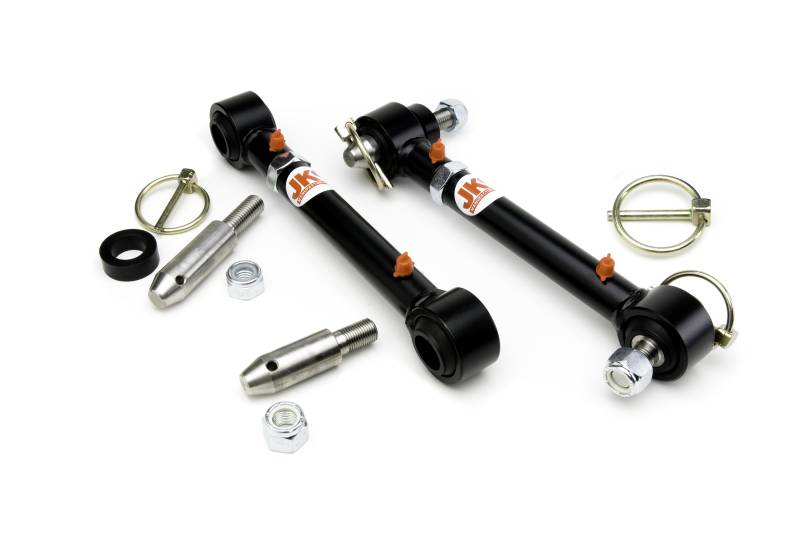 JKS Quicker Disconnect sway bar end links fit Wrangler JK Jeeps with 0-2" lift. Get better articulation on uneven terrain. Quick-release pins make it easy to decouple your sway bar. The adjustable-length design is 100% bolt-on and attaches to your sway bar and axle housing. Made in the USA, JKS Quicker Disconnects are powder-coated and built to last. Sold in pairs.