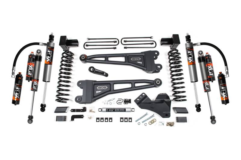 Built to outperform, upgrade your 23-26 Ford F250/F350 Super Duty diesel powered truck with this 5-inch radius arm lift kit and FOX 2.5 Performance Elite Coil-over conversion from BDS Suspension. Designed to improve stance, performance, and capability, this kit includes everything necessary to set your dually truck up right with clearance for up to 37" tires.