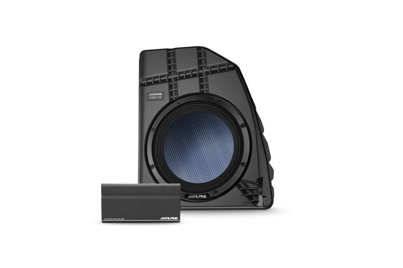 The PSS-TSLA-TYA directly replaces the factory Tesla 160W 8” subwoofer in the rear trunk panel with a powerful, 200W 10” sealed subwoofer without cutting or modification.\nPaired with the ultra-efficient KTA-200M, this system delivers a dramatic increase in output and low-end clarity, giving your Tesla a noticeably more powerful and immersive audio experience.\nUsing Alpine’s proprietary amplifier technology, Dynamic Peak Power (DPP), the KTA-200M intelligently doubles power during dynamic musical passages for ultimate efficiency with less than a mile range used at full volume.\nThe lightweight yet durable hybrid carbon fiber cone material reproduces precision bass without adding additional weight to your Tesla.\nExpertly crafted for the Tesla Model Y, the PSS-TSUB-TYA comes with everything you need for plug-and-play installation, including a pre-loaded and pre-tuned subwoofer enclosure, line output converter, Tesla-specific harnesses, and power wiring.\nDesigned for seamless integration, the subwoofer is factory-matched in performance with full OEM function retention.