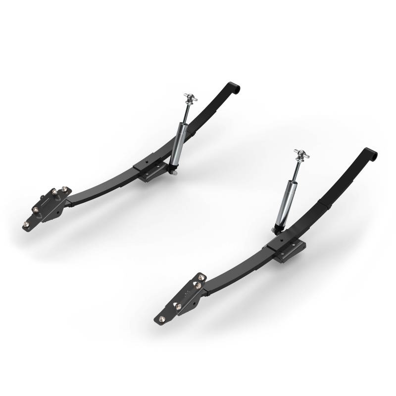 The leaf springs in this kit feature a forward bias and work with staggered shocks to help reduce wheel hop and axle wrap. A reverse-eye design is built into the springs to lower the ride height without compromising ride quality or suspension travel - no need for excessive blocks or notching.