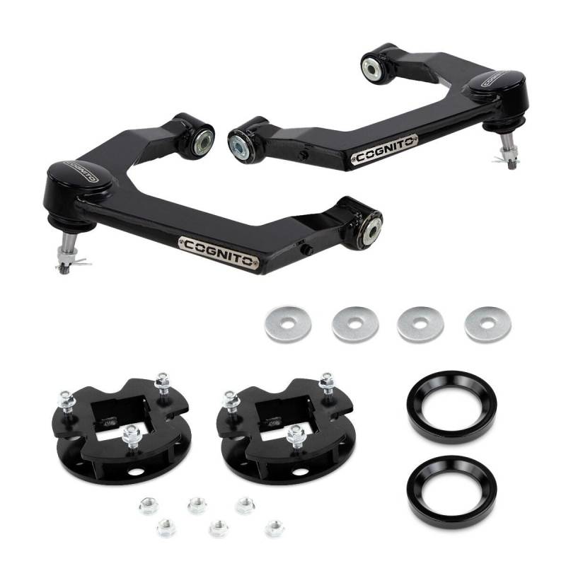 Cognito 3" Standard SM Series Leveling Kit for 19-24 Silverado/Sierra 1500 We've bundled everything you need in a leveling kit for your Silverado/Sierra 1500 2WD/4WD with high quality Cognito components. There's no guesswork. Cognito components are engineered, manufactured and assembled in the USA. 3 inches of front lift Maintains adequate droop travel to retain ride quality Enhances truck appearance by reducing the factory front low rake Cognito SM Series upper control arm kit'specific height strut and preload spacers to work with OEM front shocks