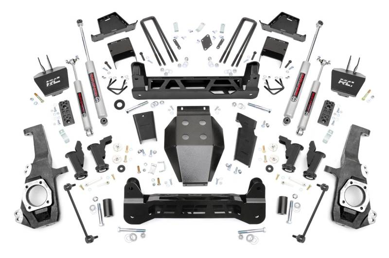 Ultimate Upgrade. Give your GM 2500HD/3500HD an unbeatable stance and better ride quality with Rough Country's 7-inch Lift Kit with Torsion Drop. This kit is a unique offering of suspension lifts, delivering the desired torsion drop look and ride you want while still offering unmatched ground clearance. The Torsion Drop brackets are designed to ensure that your vehicle's track width is not widened and allows you to maintain the factory feel of handling corners and turns. So take your everyday ride and make it one of a kind with our 7-inch Lift Kit with Torsion Drop!Premium Construction. This 7-Inch rugged lift kit is made of heavy-duty laser-cut steel components, powder-coated for a long-lasting finish. It includes replacement knuckles, 1/4" thick steel cross members for the front and rear, fabricated lift blocks, and 1/4" thick Torsion Drop Bar Brackets. You also get the option to configure with multiple shock options that we offer. This allows you to choose the shock series that best fits your needs! Ranging from our nitrogen-charged N3 shocks, to V2 monotube shocks, or our high-performance Vertex adjustable shocks, the power to choose is in your hands. This setup will give you a level stance and the ride height you need to run those larger tires with ease.Installation and Warranty. This kit is packed with all hardware needed for installation and includes full sway bar links, a durable, thick Skid Plate, and brake line relocation brackets. Although some minor cutting and drilling are required, there is no drilling or modifying of the differential, and no drivetrain or exhaust modifications are required. Rough Country's products are backed with a limited lifetime replacement warranty. This means that you have the security of knowing that Rough Country's products will work as they should, even after years of use.