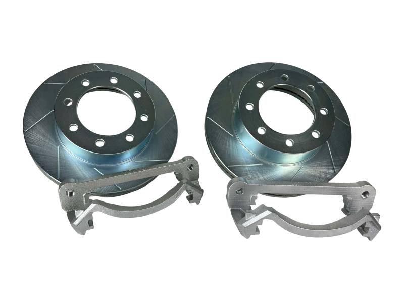 Upgrade your stopping power without breaking the bank with the Baer Big Claw HD brake kit. The Big Claw HD kit includes a pair of larger than stock diameter rotors (up to 2 inches larger on some applications) that are purpose cast with directional cooling vanes, along with a pair of new caliper relocation brackets to move the calipers outward to accommodate the larger rotors while maintaining OE Pad and hardware fitment. Independent third-party testing showed up to a 49% gain in braking effectiveness due to the increased brake torque and leverage from the larger diameter rotors, along with as much as a 200-degree reduction in brake rotor temperatures vs OE in extreme conditions due in part to the curved vane design. Together, these equal improved stopping distances, reduced brake fade and enhanced braking confidence all at a fraction of the cost of other leading replacement kits. *** Because of the abundance of wheel companies and styles, it is impossible for Baer to guarantee the fit of the Big Claw HD rotors into a specific wheel. To verify fitment, we recommend using the template specific to the system you are interested in and compare it to the wheel of choice, including spare tire/wheel.***