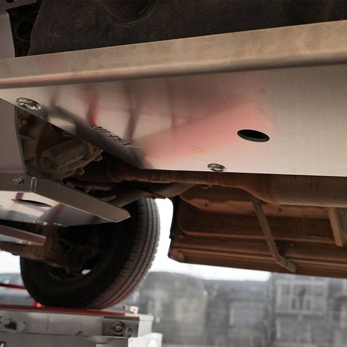 The Mercedes Sprinter Van Fuel Tank Skid Plate, tested on SWB 4x4 models, is manufactured from precision laser-cut 1/4" aluminum, combining strength with minimal added weight. Designed to shield the fuel tank from off-road damage while preserving ground clearance, it is recommended as part of ASFIR’s complete Mercedes Sprinter underbody protection kit.