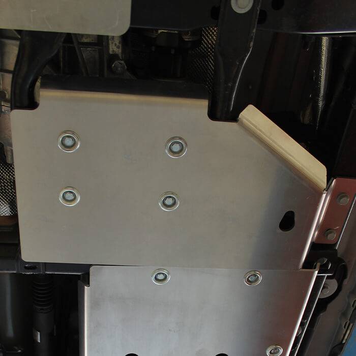 The Jeep Gladiator JT EcoDiesel Transfer Case & Fuel Filter Skid Plate is made from durable, laser-cut 1/4" (6 mm) aluminum to deliver strong, lightweight protection.\nDesigned for 2021–2025 Gladiator JT models with a 3.0L EcoDiesel engine.\nIt shields the transfer case and fuel filter from off-road damage while maintaining ground clearance, recommended as part of ASFIR’s full underbody protection system.