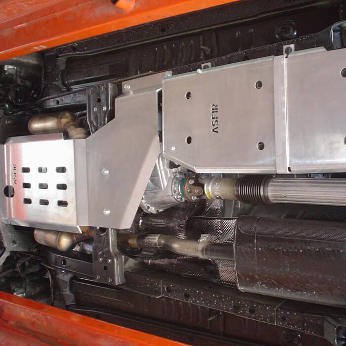 The Jeep Cherokee, Jeep Liberty, and Dodge Nitro Gearbox & Transfer Case Skid Plate is manufactured from precision laser-cut 1/4" (6 mm) aluminum, delivering an excellent balance of strength and light weight. Tested on vehicles with a 3.7L V6 gasoline engine, it ensures reliable protection for the gearbox and transfer case while minimizing clearance loss. Recommended as part of ASFIR’s complete underbody protection set.