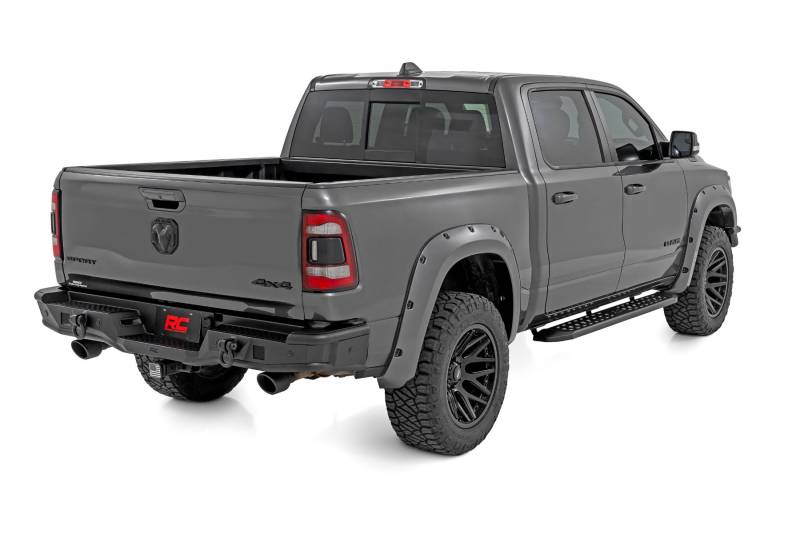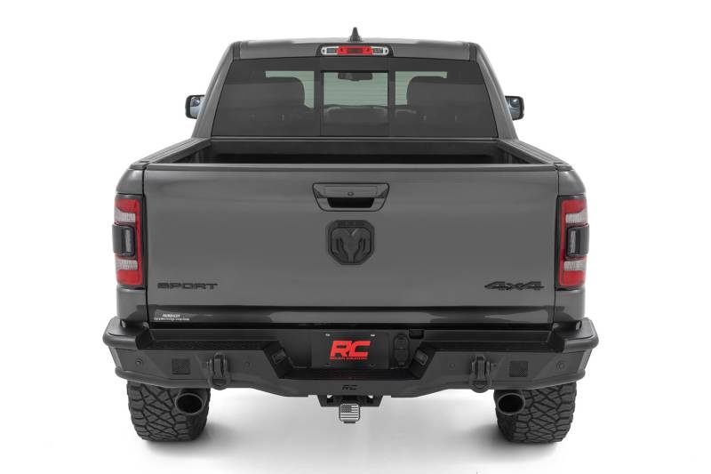 Rugged Rear-End Upgrade: Transform the rear of your fifth-generation Ram 1500 with Rough Country's Tubular Rear LED Bumper. This aggressive, high-clearance design not only elevates your truck's off-road appearance but also improves departure angles for trail-ready performance. Whether you're crawling rocky terrain or cruising city streets, this bumper delivers head-turning style and rock-solid protection.Engineered for Strength and Function: Crafted from heavy-duty steel and finished in a corrosion-resistant, textured black powder coat, this bumper is built to handle whatever the road or trail throws your way. Its bold tubular design complements your Ram's body lines while providing dependable impact resistance and long-lasting durability.Fully Compatible and Sensor-Ready: This rear bumper is designed to retain your factory receiver hitch for full towing functionality and accommodates factory backup and proximity sensors. For Ram 1500 models not equipped with sensors, mesh block-off plates are included to maintain a clean, finished look.Light-Ready Design: Need extra visibility? This bumper includes provisions to mount Rough Country's 2-inch LED light cubes, giving you the ability to add powerful rear-facing illumination for trail spotting, worksite visibility, or night-time reversing.Hassle-Free Installation: No cutting, welding, or drilling required. This bumper features a 100% bolt-on installation using standard tools and can be completed in just 3-4 hours from the comfort of your garage.Backed by a Limited Lifetime Warranty: Rough Country backs this rear bumper with a 1-year finish warranty and a limited lifetime warranty against manufacturing defects.