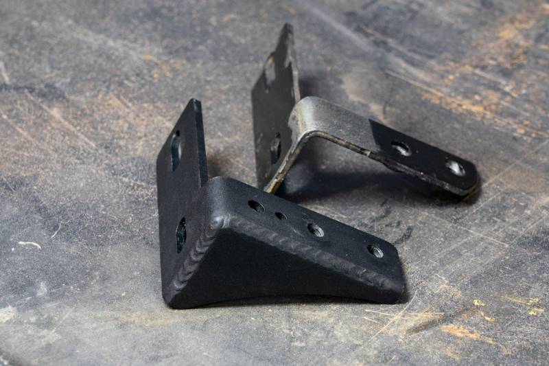 Our Baja Norte High Clearance Heavy Duty Rear shock brackets allow lifted Sprinter owners to realize further ground clearance gains and an integrated skid protects the lower eyelet. Designed to wrap and reinforce the factory lower shock mount with laser cut and formed 3/16" steel, this bracket trims the low hanging factory design and relocates the shock eyelet 2" higher for a huge increase in clearance. For further peace of mind, we also upgrade the failure prone rear lower bump stop mount on the axle, which has a tendency to snap off on heavy vans that get used off road. ONLY COMPATIBLE WITH VAN COMPASS 2" LIFT KIT AND FALCON ADJUSTABLE SHOCKS.