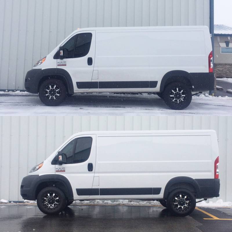 Eliminate the nose down rake of your Ram Promaster with this 1.50" front lift kit from Van Compass. This strut spacer is designed specifically for the Ram Promaster / Fiat Ducato chassis and bolts on top of the factory strut assembly to lift the van a true 1.50". Proper camber correction is built into the spacer so the vehicle's alignment will stay true to the OEM specifications. There is no increase in harshness or spring rate with this lift kit. OEM ride quality is retained. Lift your vehicle the correct way to enjoy the added ground clearance and peace of mind when venturing off the beaten path towards adventure.