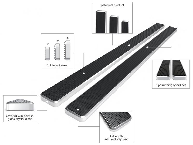 - The 6-inch-wide full length ribbed step pad design ensures maximum grip and easy access to your vehicle.