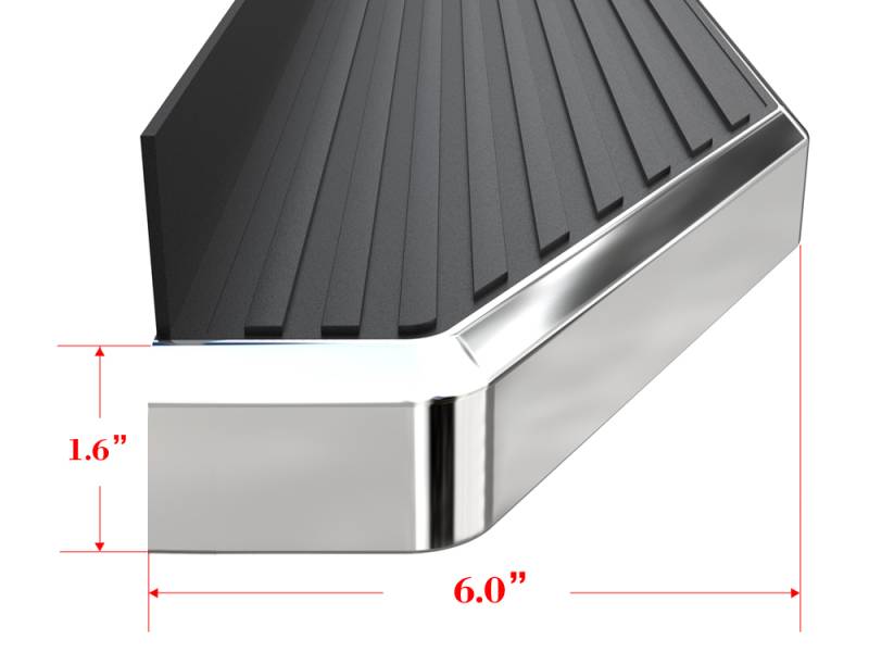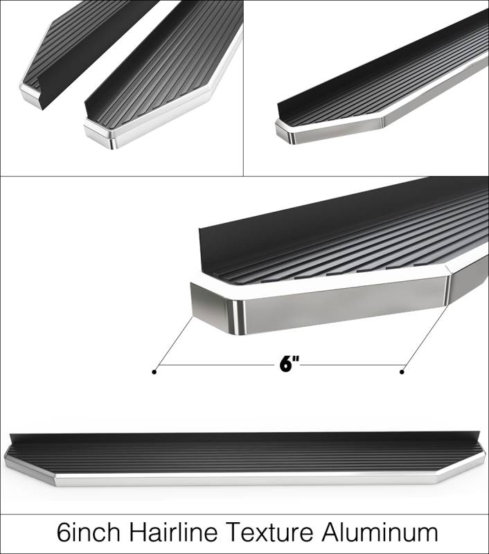 - The 6-inch-wide iRunning board comes with a full-length ribbed step pad design that provides maximum grip and secure and easy access to the vehicle.