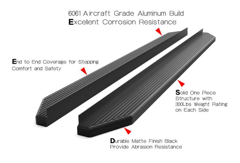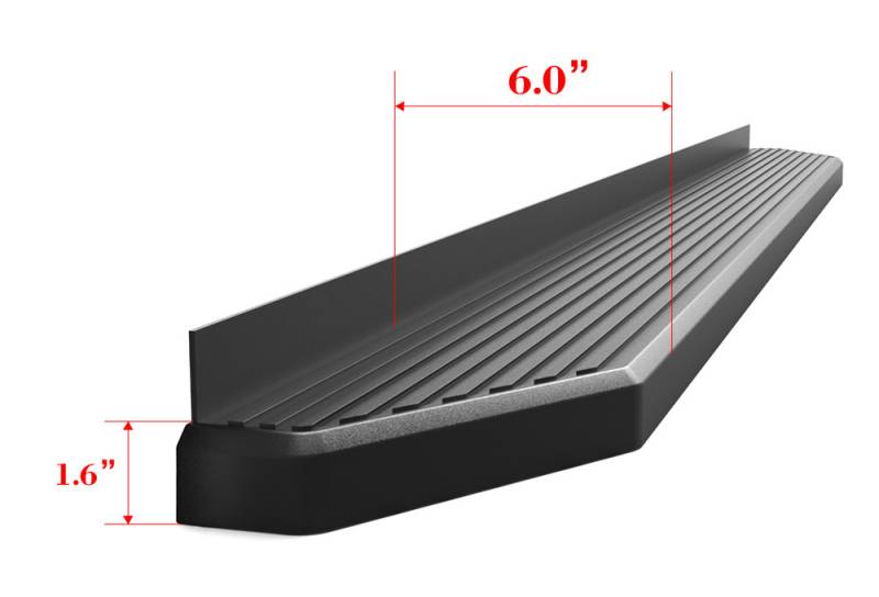 - The 6-inch-wide iRunning board comes with a full-length ribbed step pad design that provides maximum grip and secure and easy access to the vehicle.