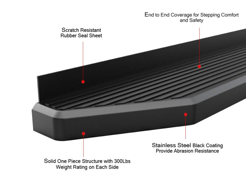 - The 6-inch-wide iRunning board comes with a full-length ribbed step pad design that provides maximum grip and secure and easy access to the vehicle.