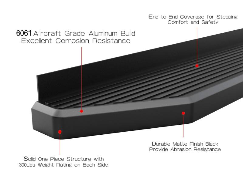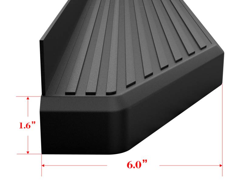 - The 6-inch-wide iRunning board comes with a full-length ribbed step pad design that provides maximum grip and secure and easy access to the vehicle.