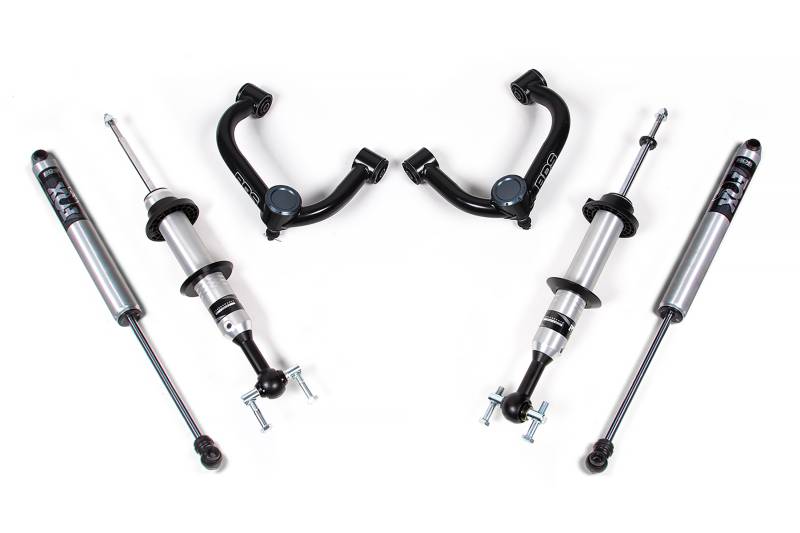 Take your F150 to the next level by installing a FOX 2.0 Snap Ring Strut 2 inch leveling kit with heavy duty upper control arms. These kits use the FOX 2.0 Performance Series coilover struts for a bolt-in upgrade to fit up to 35x12.50 tires while providing improved damper performance across all terrains.
