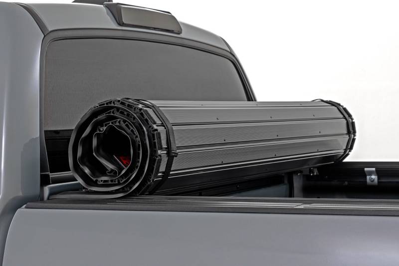 Your truck bed is built for hauling, but without a cover, your cargo is left vulnerable to the elements and unwanted attention. Rough Country's Hard Roll-Up Bed Cover delivers the perfect balance of security, durability, and style, keeping your gear safe, dry, and out of sight while transforming your truck with a sleek, modern look.Sleek Flush, Low-Profile Design: Finished in a stylish matte black with durable aluminum slats, this cover adds a clean, streamlined appearance that complements any truck.Convenient Roll-Up Access: Designed for everyday versatility, the roll-up design allows full bed access in seconds. A single cable pull quickly releases the latch, while the auto-latching closure locks everything back down securely, hassle-free.Built Strong, Built to Last: Supporting up to 600lbs of evenly distributed weight, this heavy-duty cover stands up to tough jobs. Its black powder-coated aluminum frame resists corrosion and harsh weather, ensuring long-lasting durability you can rely on.Smart, Secure Mounting System: A dependable track and rail system with included drain tubes channels water away efficiently, helping keep your cargo dry while ensuring a snug, weather-resistant fit.Safety and Peace of Mind: Nylon safety straps with quick-release clips keep the cover secure when rolled, while a dependable 5-year warranty backs your investment for years of worry-free use.No-Drill, Hassle-Free Install: With all tools included, installation and removal are simple and straightforward, no drilling required.Upgrade your truck with a bed cover that works as hard as you do. Strong, stylish, and built for convenience, the Rough Country Hard Roll-Up Bed Cover is the ultimate way to protect your gear while keeping your truck looking sharp.