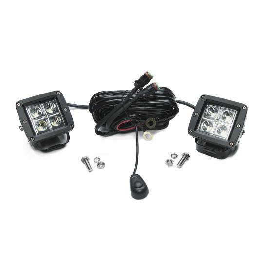 - Kit Components Two 3.0 inch LED cube lights, Dual lead wiring harness with switch/relay, mounting brackets and hardware