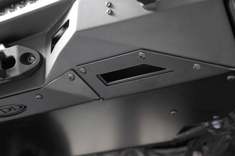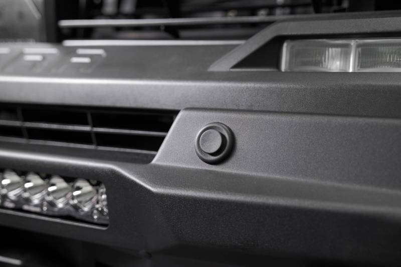 Our Front Bumper features a top hoop with integrated light mounts for running one 20” light bar or two pod lights. The front bumper also provides a center 20” light bar mount. The bumper offers a pair of 1” thick D-ring mounts and an optional Winch Kit for running up to a Warn Evo winch. Our front bumper is made from steel, and is finished in a dual-stage hammer black powder coat with satin black accent panels. It retains the factory parking sensors and fog lights. The bumper can be paired with our removable Aluminum Skid Plate. Made in the USA.\n* Please Note: The bumper does not retain the Toyota Safety Sense (adaptive cruise control) or front skid plate, and the top hoop obstructs the front camera. It is not compatible with hybrid models.\n** Please Note: Trimming is required for installation.