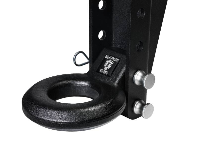 The BulletProof Loop Attachment can be used as a coupler for a trailer, or to attach ropes, chains for recovery/demolition. It is even popular for sled pulling! Rated for a max towing capacity of 24,000 pounds and has a vertical weight rating of 3,500 pounds. It works with any of steel Medium, Heavy or Extreme Duty BulletProof Hitches .