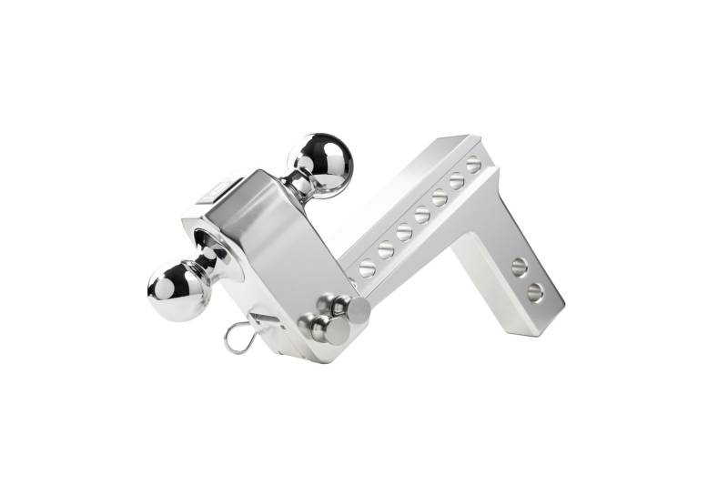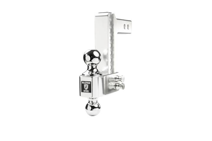 The BulletProof Medium Duty 2” shank, 6” drop/rise Aluminum Hitch is the ultimate choice whether you are towing for work or for fun. With a max towing capacity of 14,000 lbs. and 2,000 lbs. of tongue weight, the BulletProof Medium Duty Aluminum Hitches are the highest rated on the market. Built from 6061 T6 grade aluminum to be lightweight yet still offer the same high weight capacities you have come to trust from BulletProof Hitches®. The hitches are machined to an extremely tight tolerance for a precision fit. Polished for a sleek look to accent any vehicle and guaranteed to never rust. The aluminum hitches come standard with a 2” & 2-5/16” dual ball that is adjustable in 1” increments. This hitch offers 8 levels of adjustment to ensure you are towing level, which allows for a safer and more comfortable towing experience. This hitch is the perfect choice for vehicles with a receiver height of 20”-21” (ground to the bottom of the receiver tube). It has an overall length of 10-5/8".
