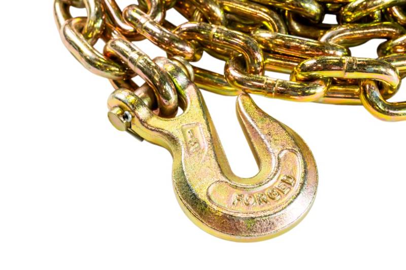 The BulletProof Extreme Duty 1/2" x 16' Transport Chain is the ultimate choice for the times you need to secure large & heavy equipment for transport. Designed for both safety and durability, the chain is strong, easy to tension and easy to store. This chain is made from a heat-treated Grade 70 chain to withstand even the harshest conditions. The gold chromate finish offers corrosion resistance and allows DOT inspectors to easily determine the grade of chain being used. Links are stamped "G70" in accordance with Department of Transportation regulations. *This is a SINGLE CHAIN
