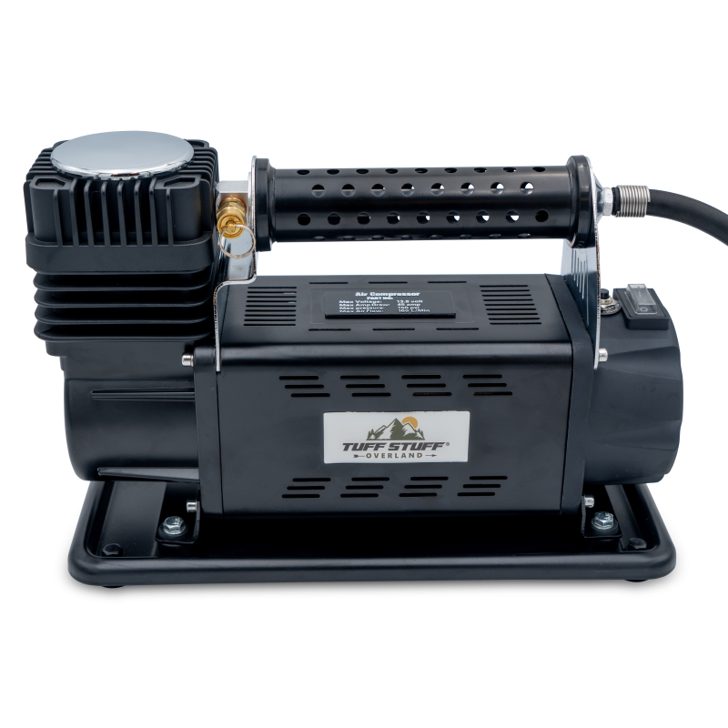 The company was founded by two guys that have a passion in optimizing the customer experience and providing top of the line products at unbeatable prices. Seeking out knowledge about the industry and the love of the outdoor challenges Tuff Stuff® was born and we started a passionate family of employees that Love off-road adventures. MAXIMUM AIR FLOW 160 LITERS PER MINUTE MAXIMUM VOLTAGE 13.8 VOLT / AMPERAGE DRAW 45A MAXIMUM WORKING PRESSURE 120PSI / RESTART PRESSURE 150PSI MAXIMUM OPERATING TEMP BETWEEN 140°F / -67°F INCLUDES 150 PSI PRESSURE GAUGE AND STORAGE BAG